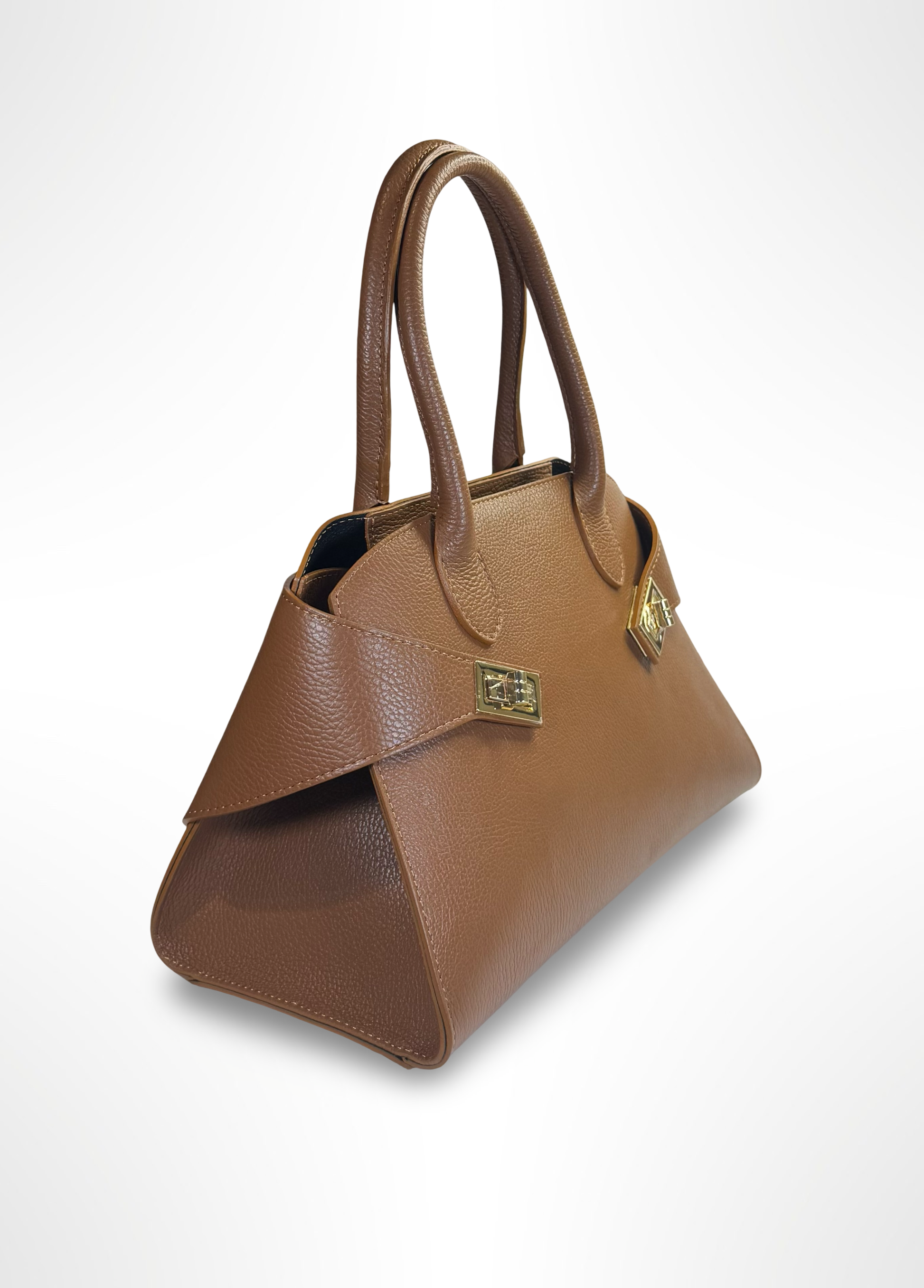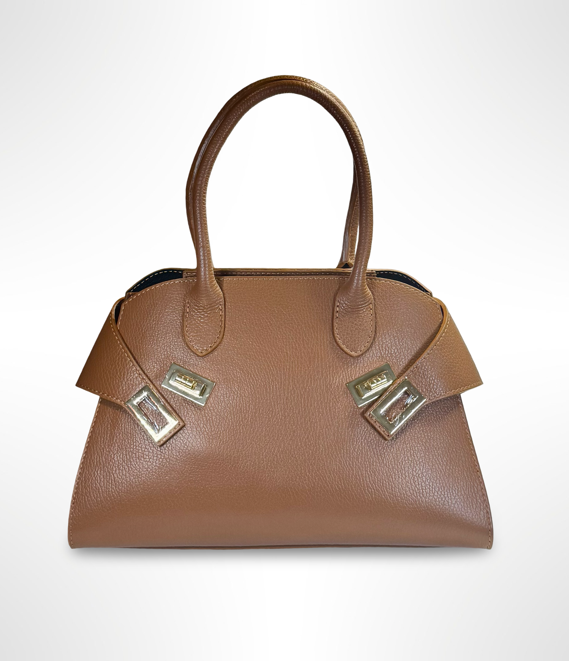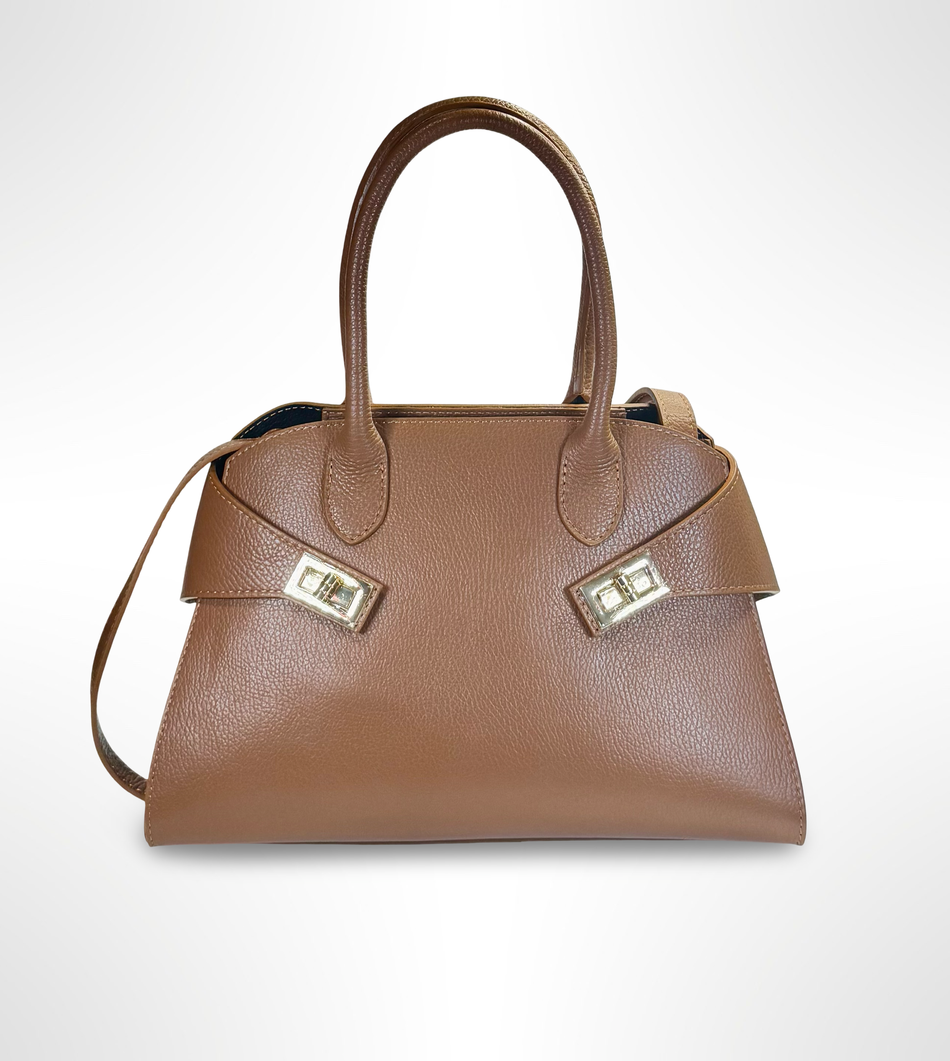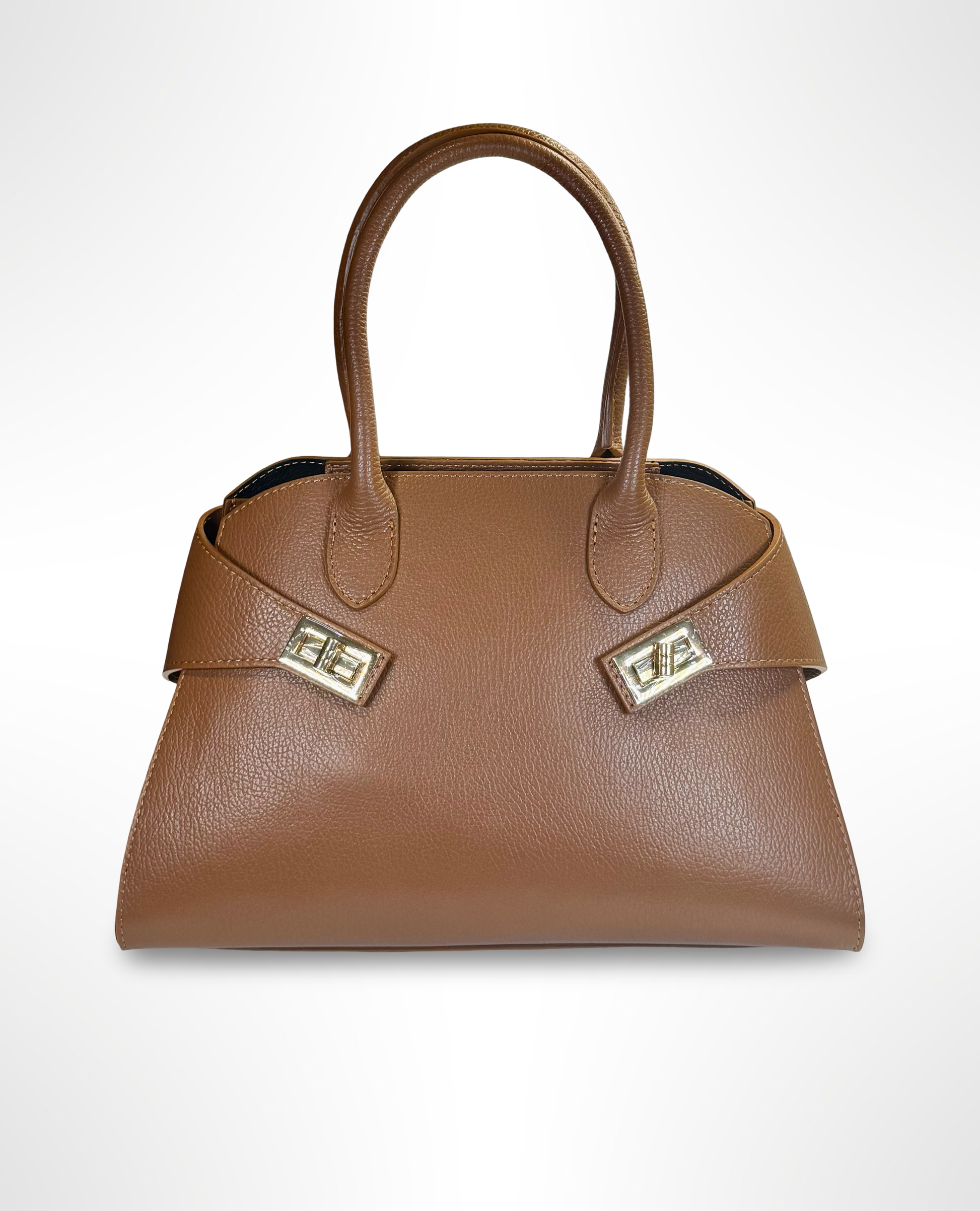 The Aurea Tote is a refined, structured handbag crafted in premium Italian leather. Its elegant silhouette, gold-turn hardware, and clean lines make it a timeless everyday essential. Designed with a removable strap for added versatility — carry it by hand or wear it over the shoulder.