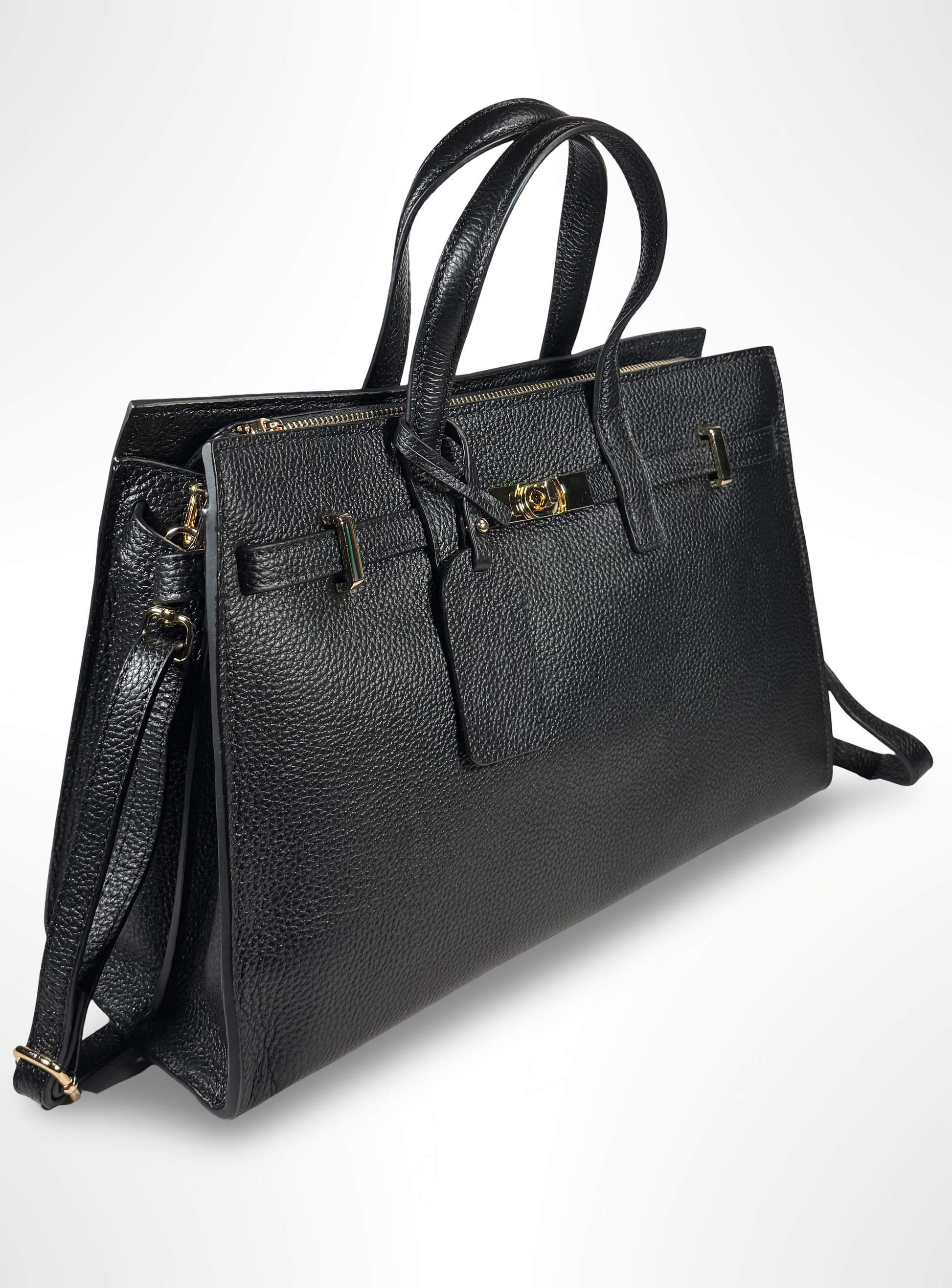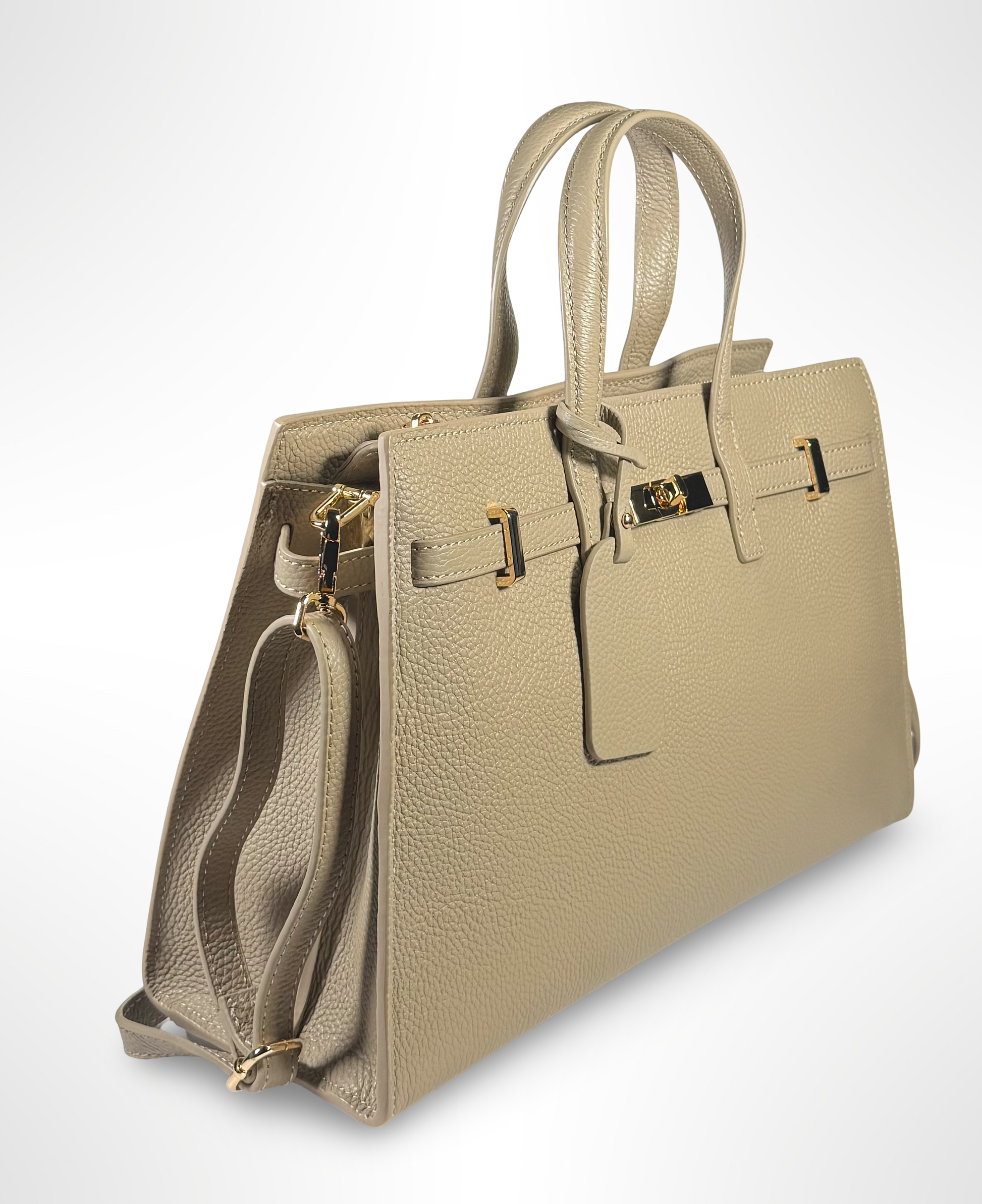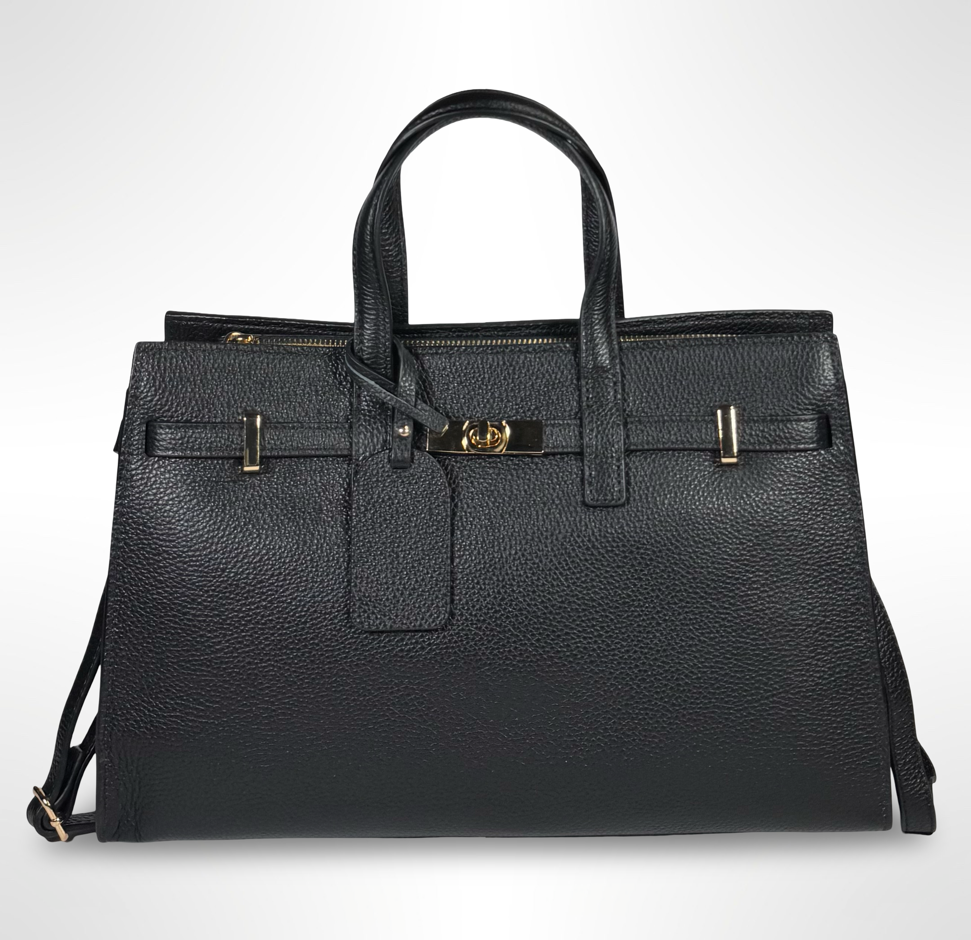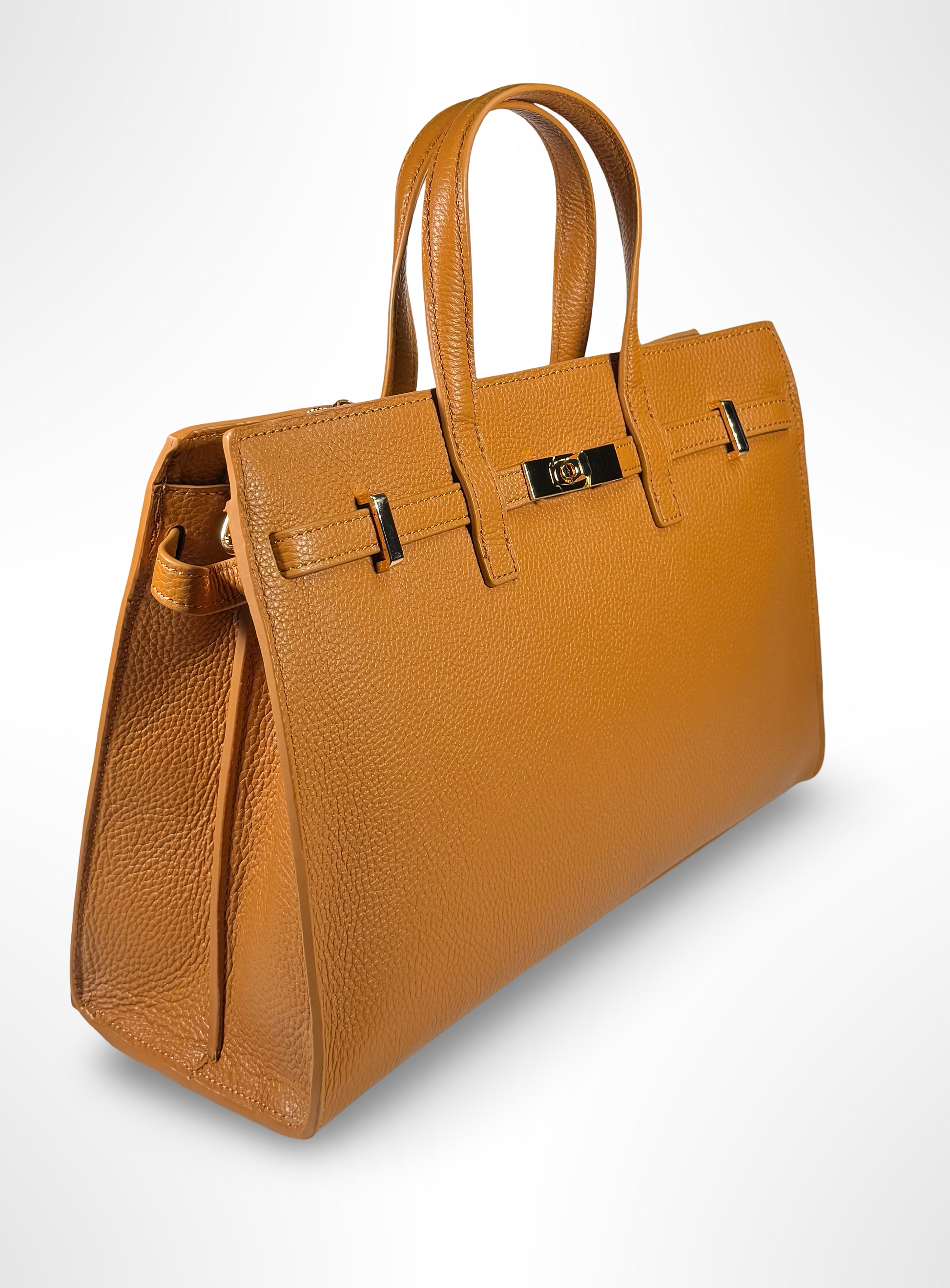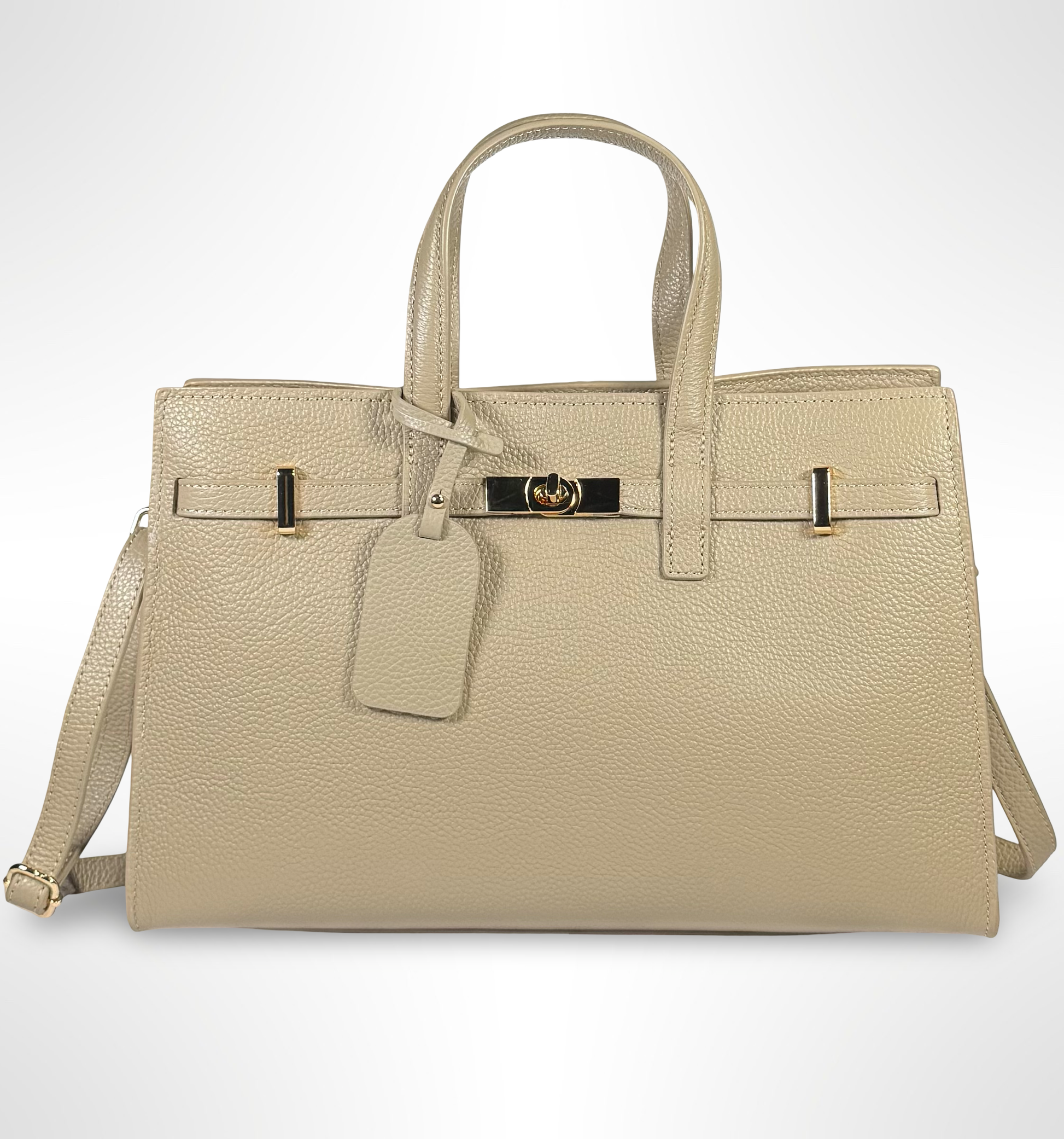 The Siena Tote Bag blends a refined silhouette with everyday practicality. Crafted from genuine Italian leather, it features a structured shape, polished gold-tone hardware, and a spacious interior for your daily essentials. Its versatile design makes it ideal for work, outings, and elevated everyday wear.