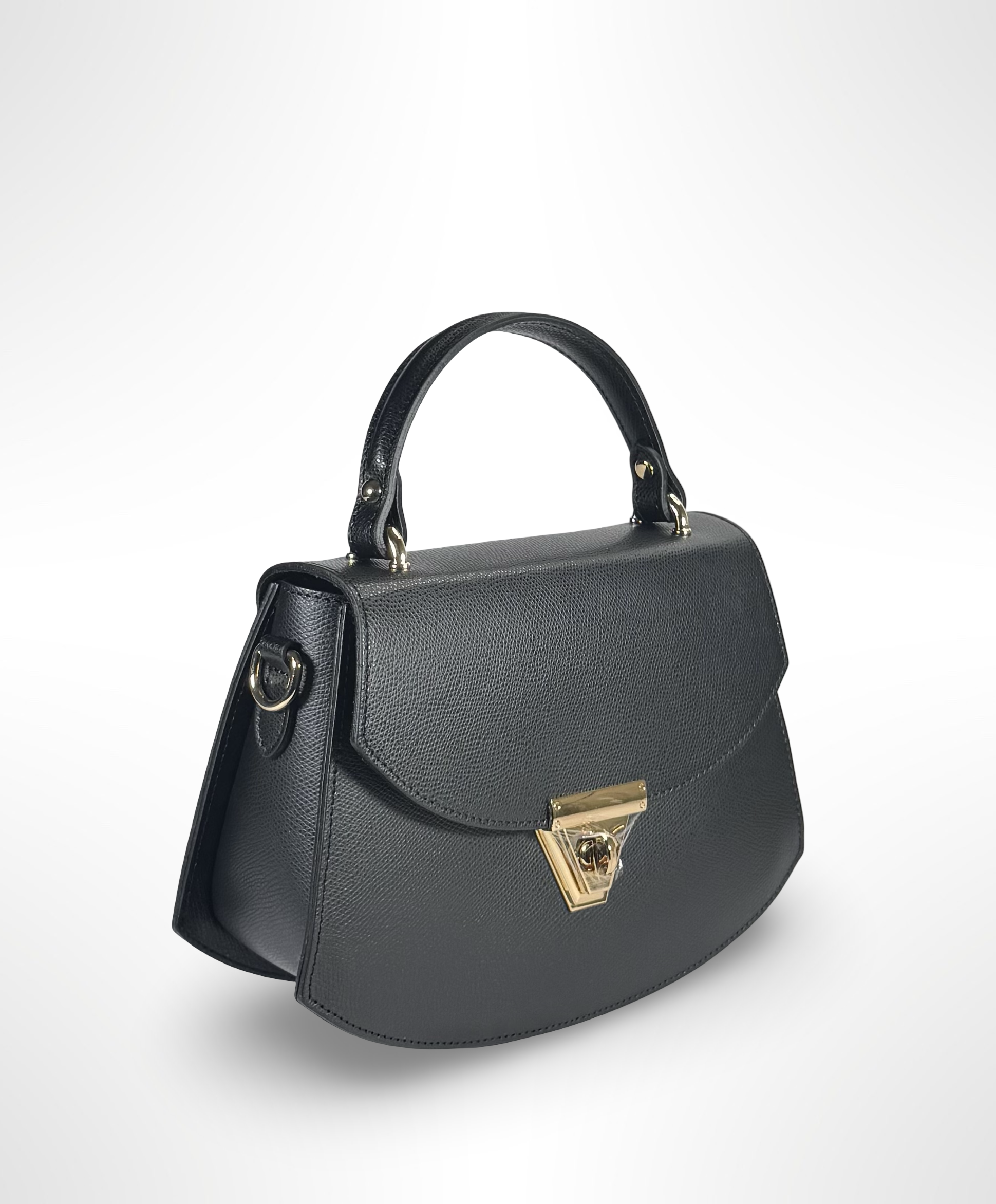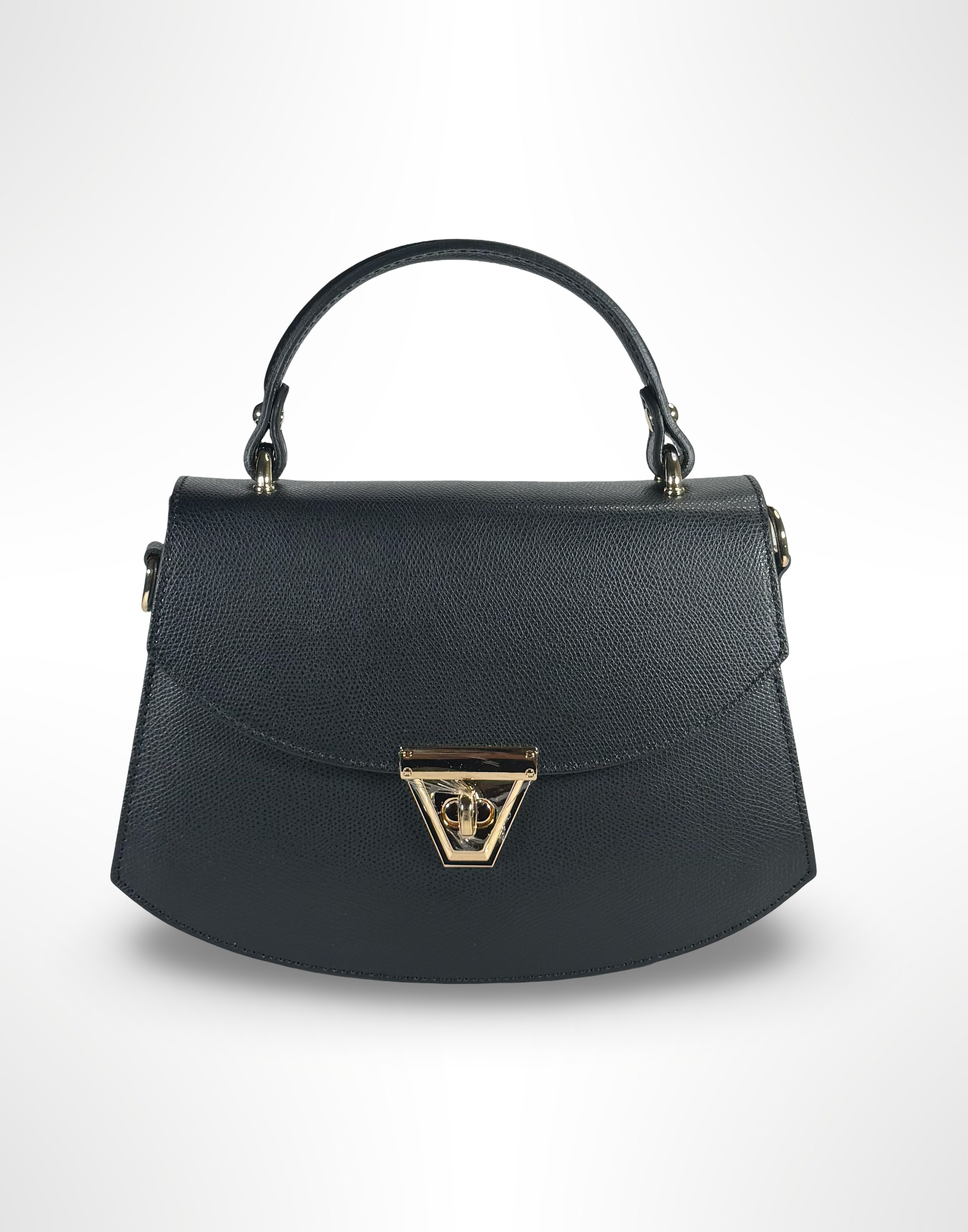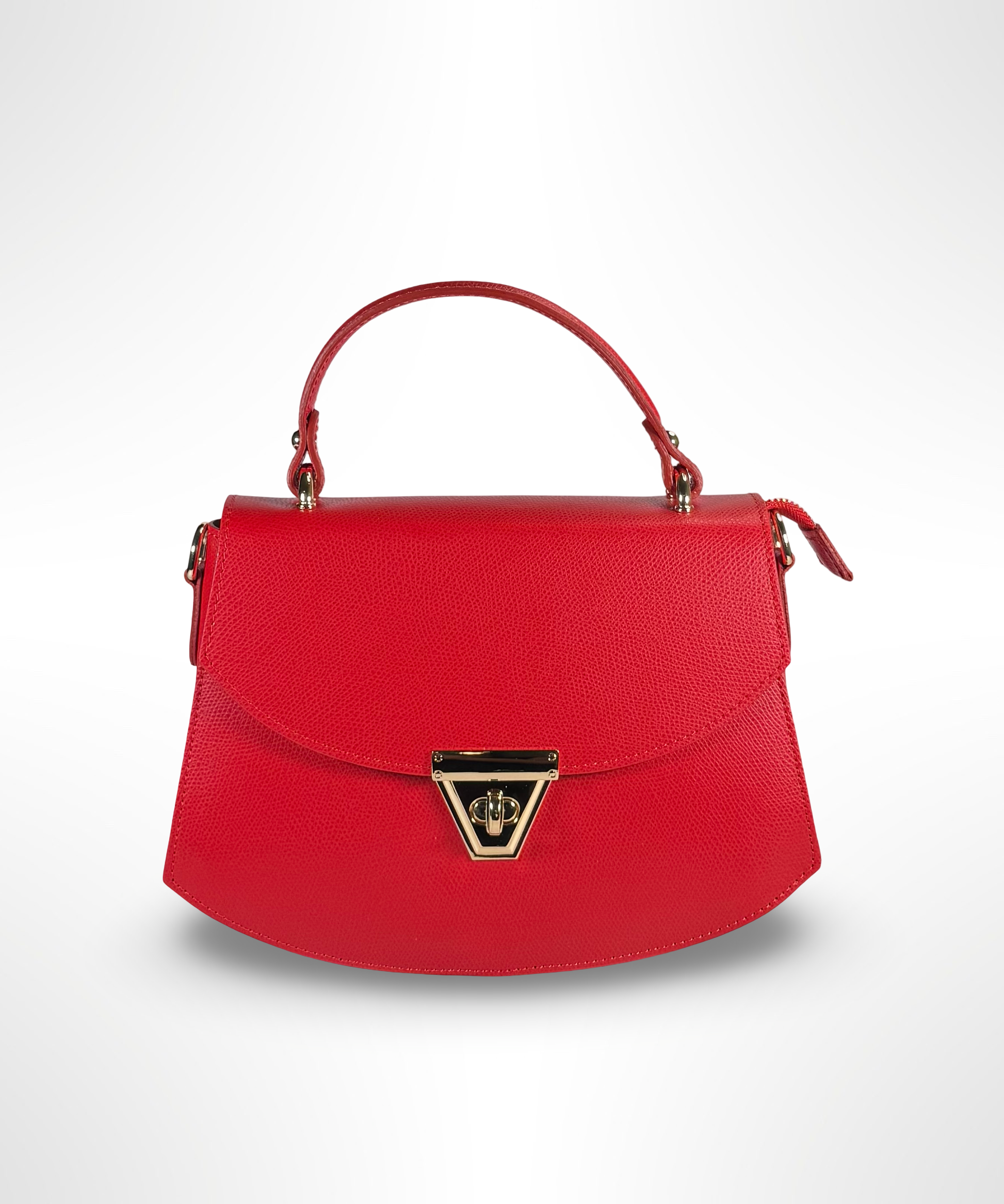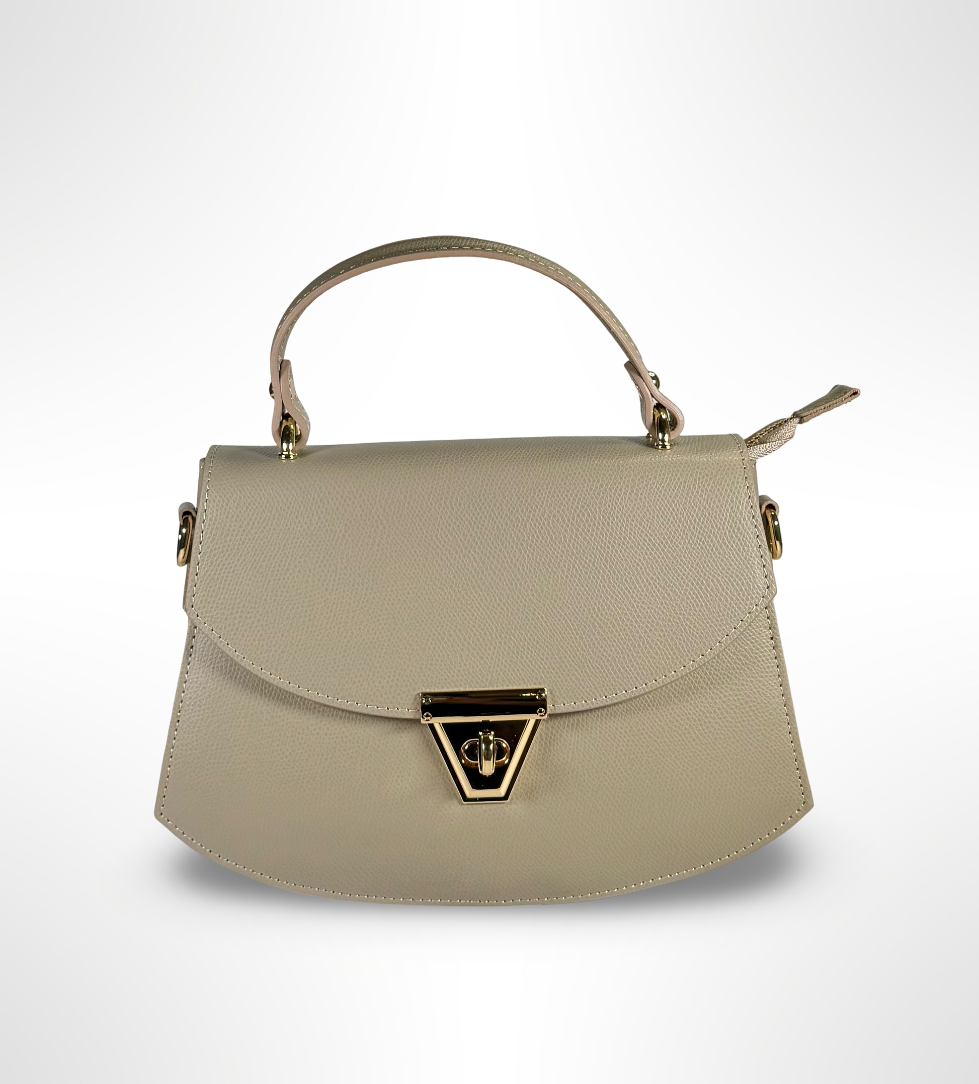 The Tivoli Handbag blends refined structure with a modern, feminine shape. Crafted in 100% genuine Italian leather, it features smooth edges, luxe gold hardware, and a distinctive triangular turn-lock closure.