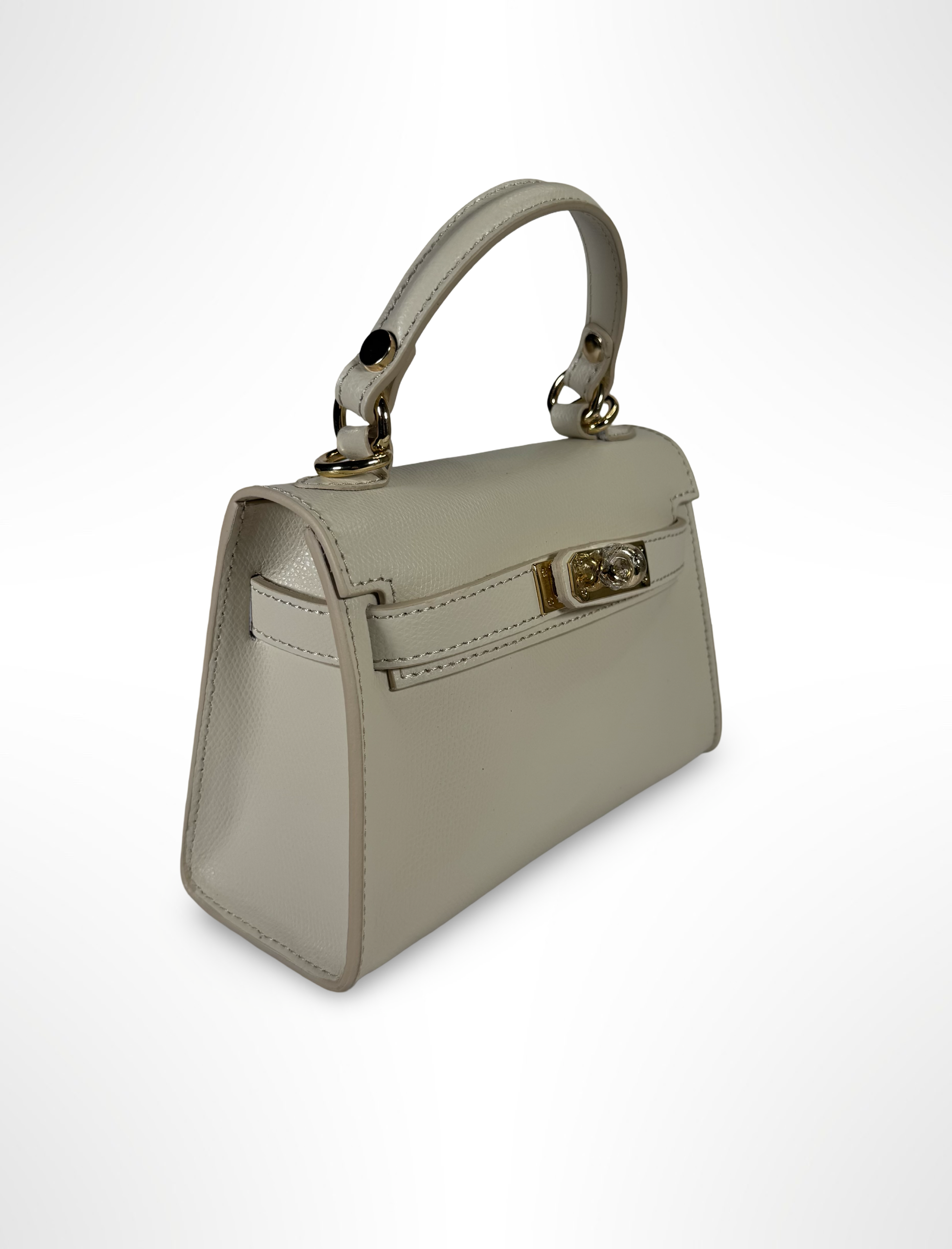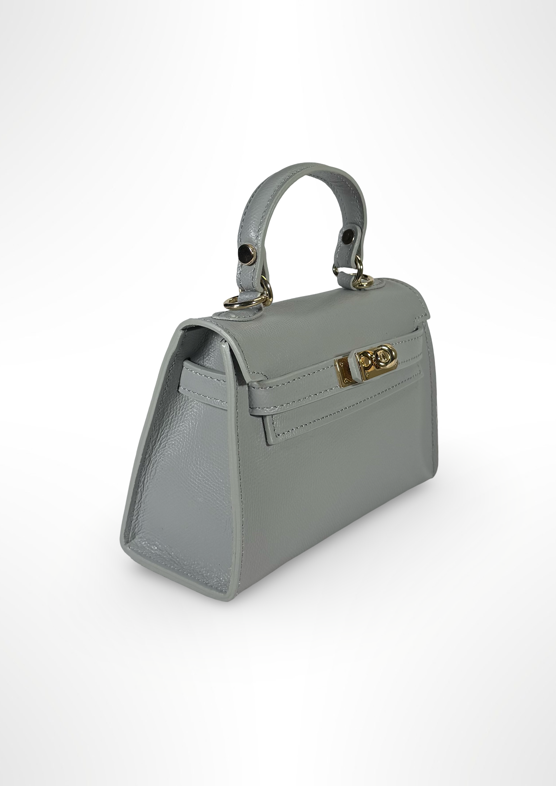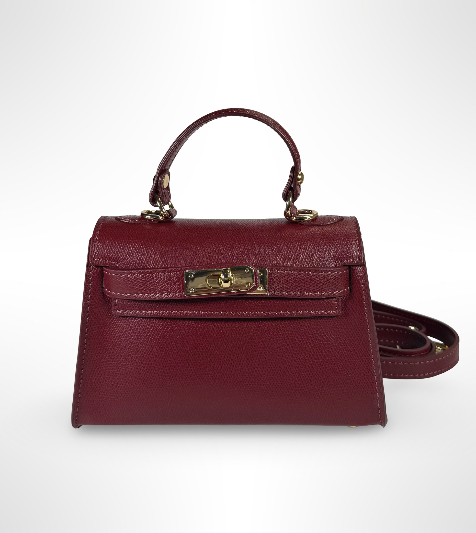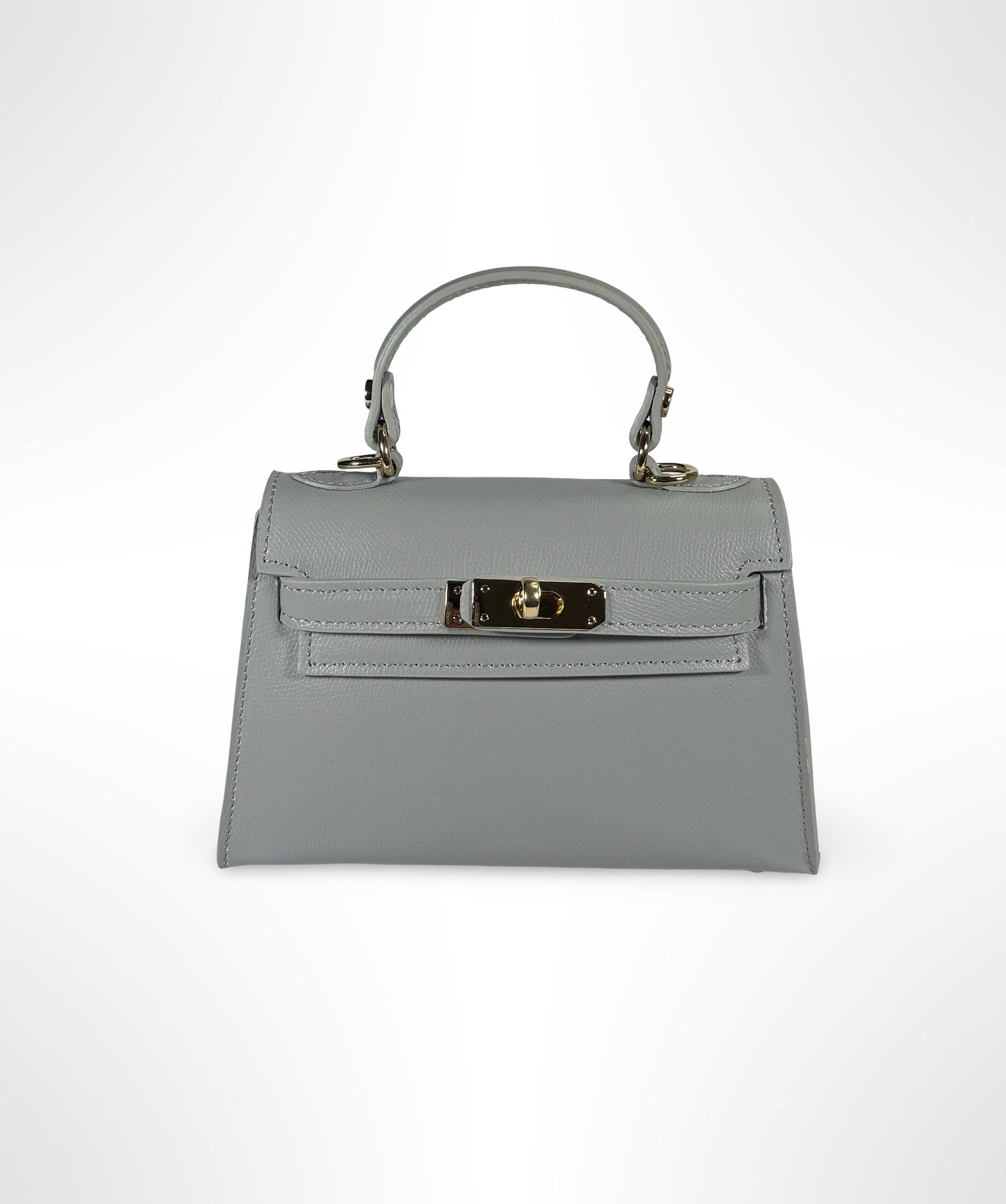 It features a top handle, a removable long strap for shoulder or crossbody wear, and a secure front turn-lock closure. Despite its mini size, it offers room for your essentials.