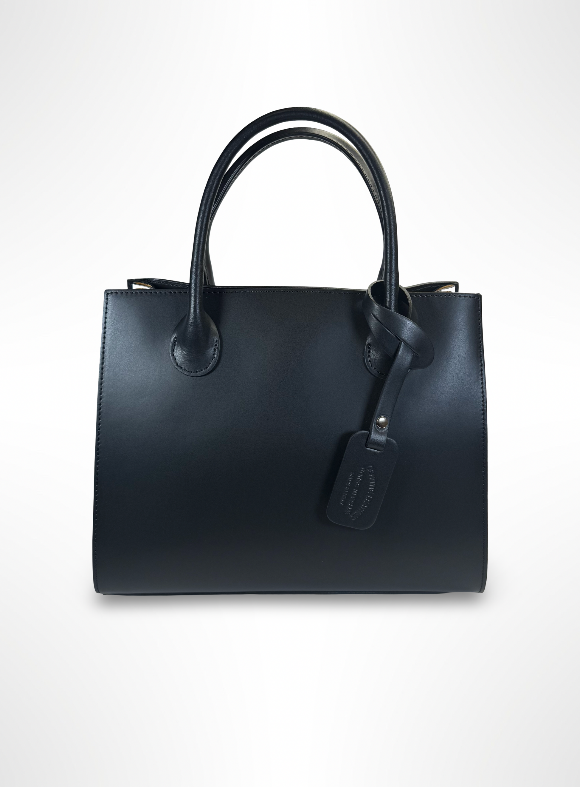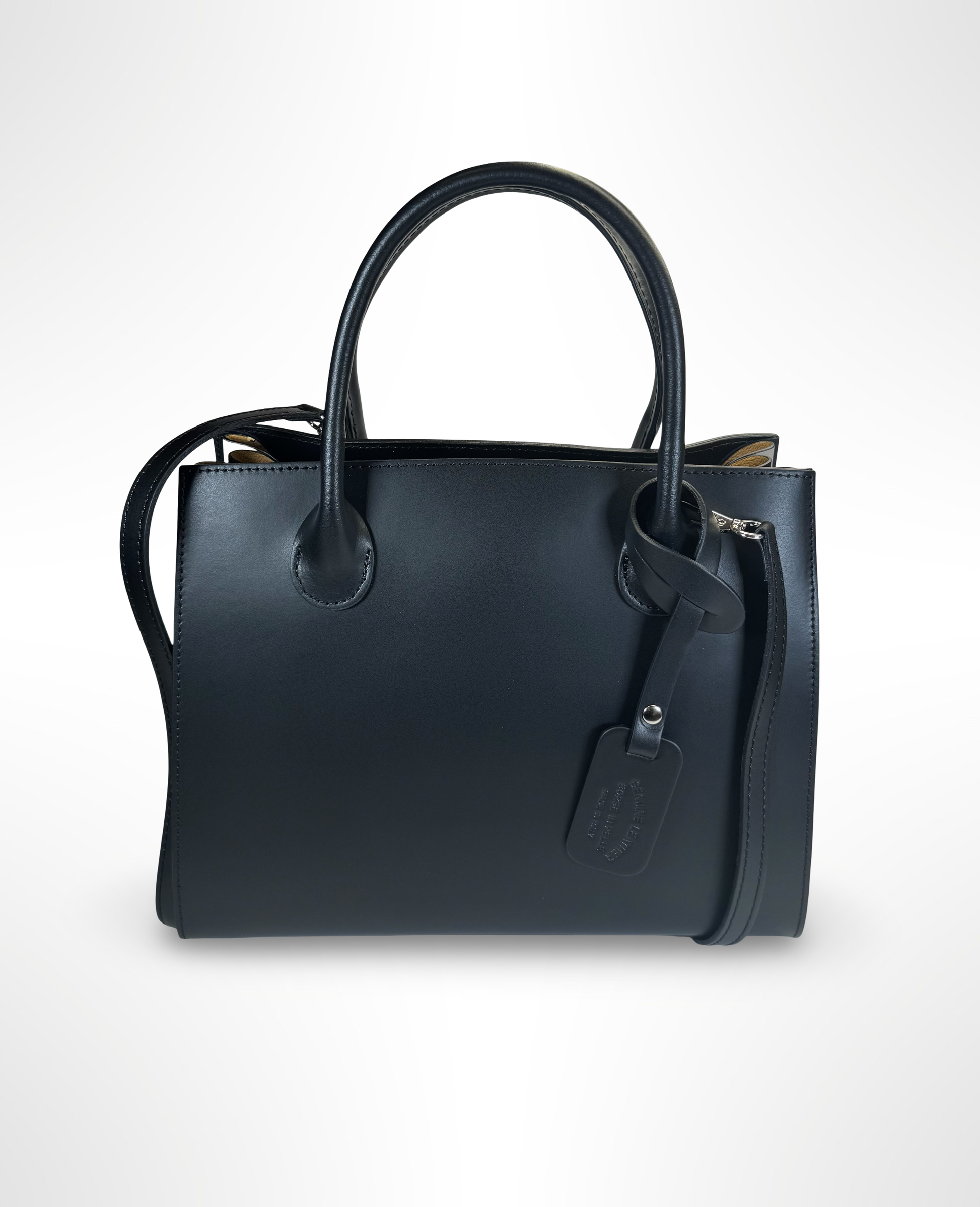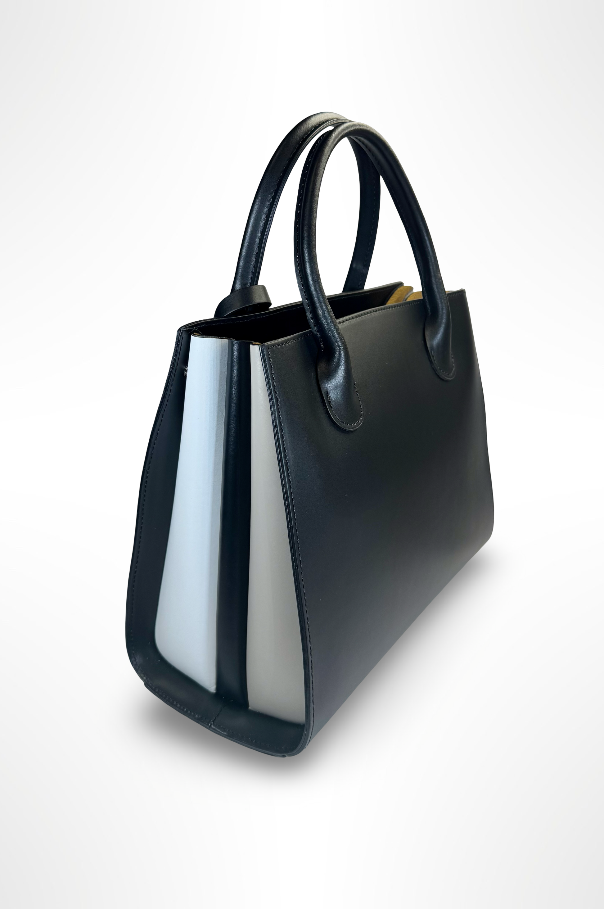 The Arona is a modern structured handbag crafted in smooth Italian leather. Its clean lines, contrasting side panels, and refined silhouette create an elegant, elevated look. Designed with a removable strap for versatile wear — carry it by hand or as a chic shoulder bag.