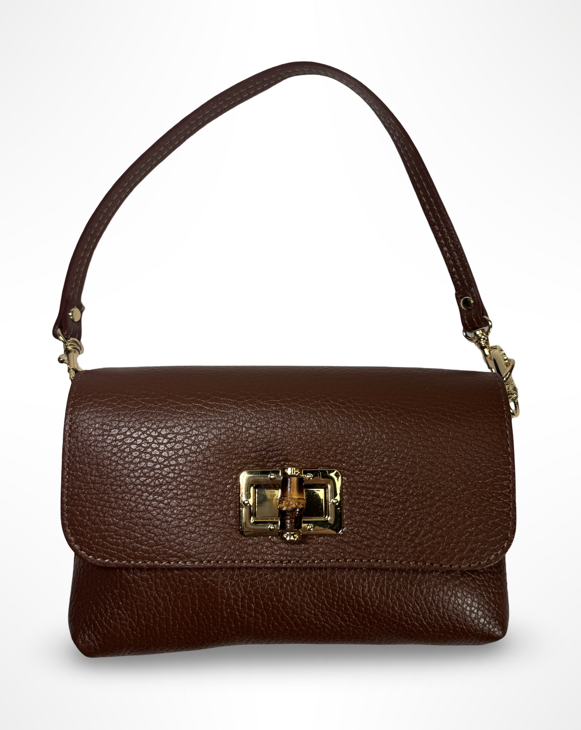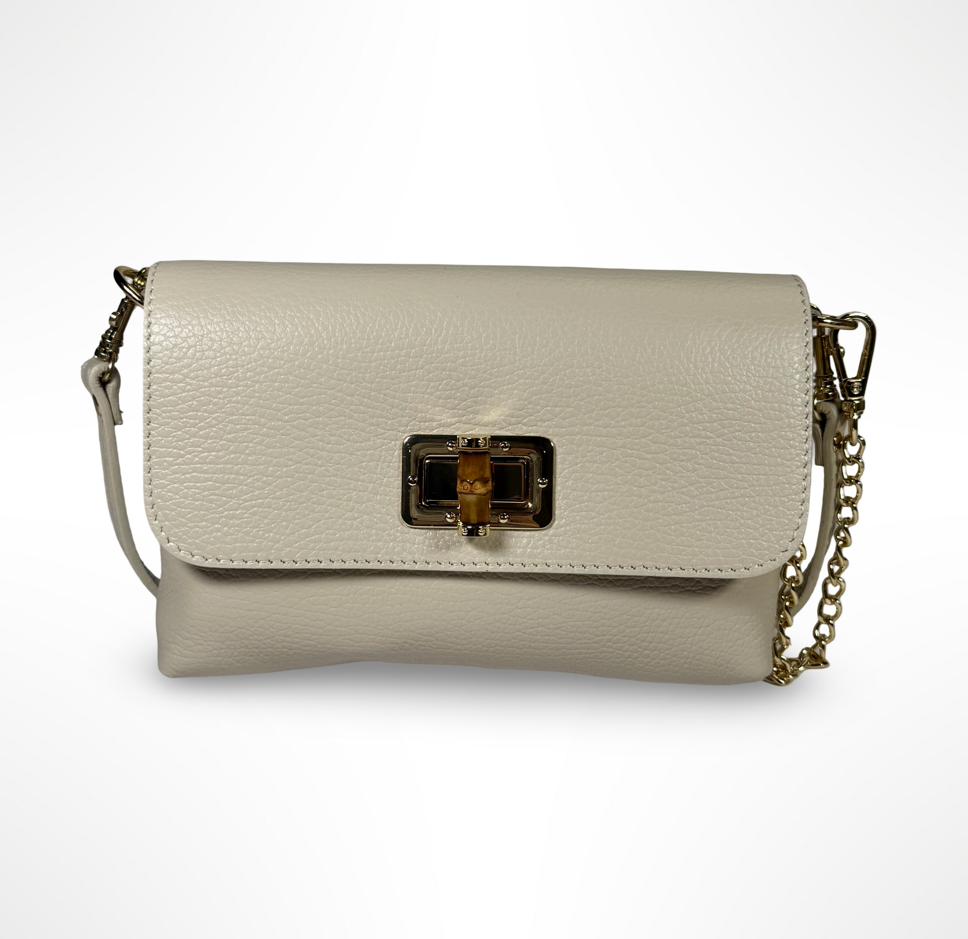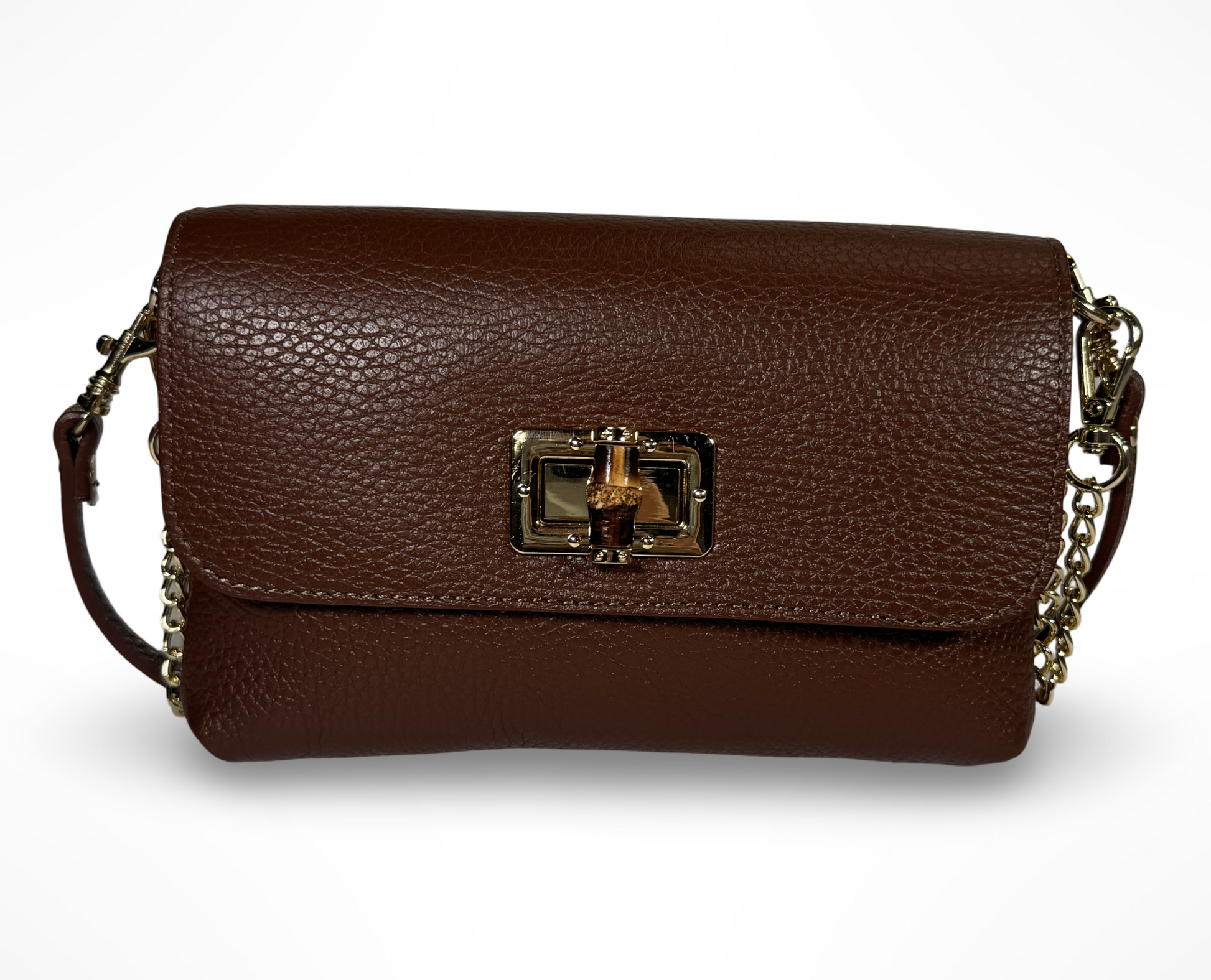 The Mare Bag adds a polished, elegant touch to any look. Crafted from genuine Italian leather, it features a refined flap silhouette, a secure interior closure, and a removable chain strap for crossbody styling. Perfect for nights out or for elevating your daytime outfits with a sophisticated accent.