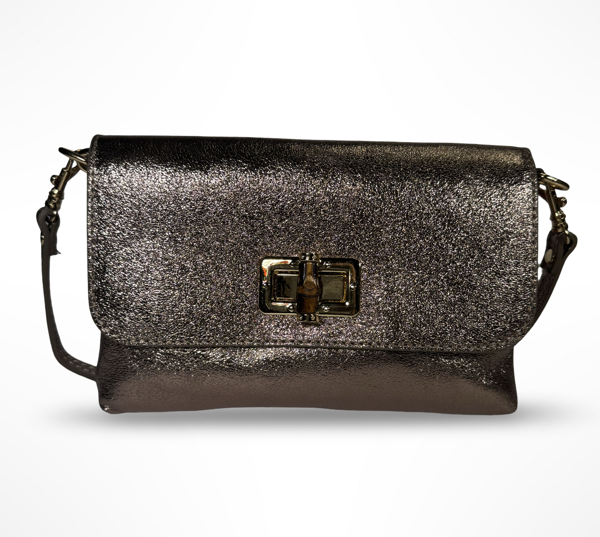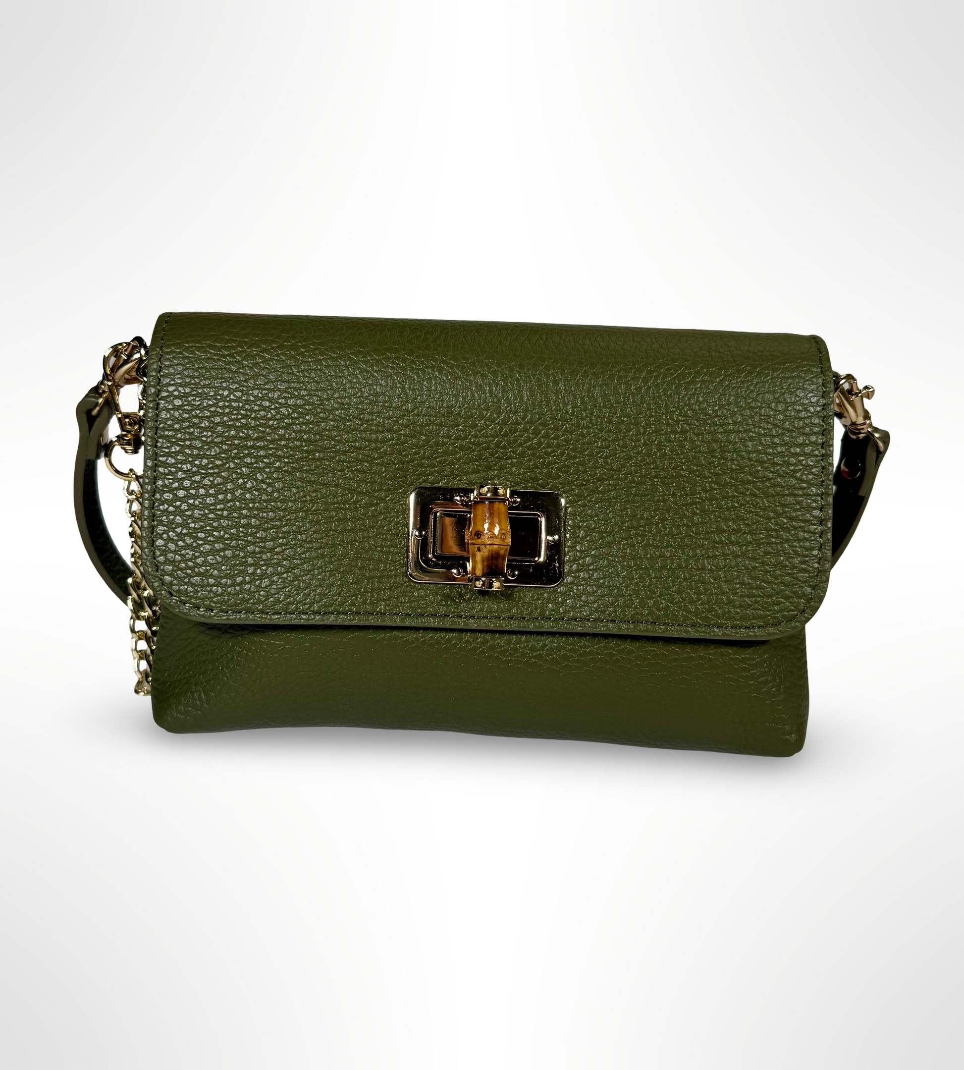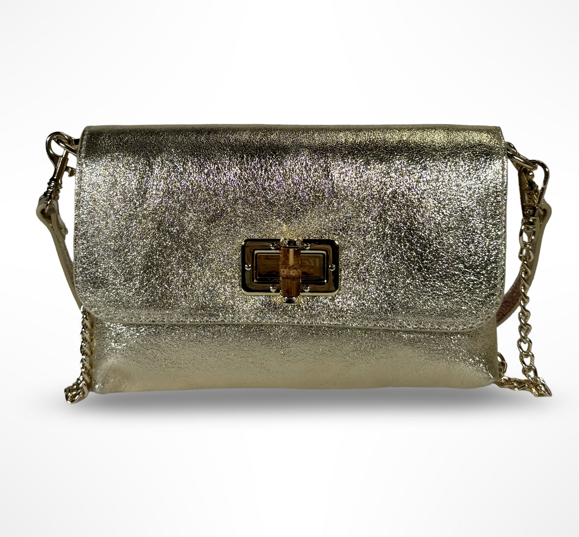 The Mare Bag adds a polished, elegant touch to any look. Crafted from genuine Italian leather, it features a refined flap silhouette, a secure interior closure, and a removable chain strap for crossbody styling. Perfect for nights out or for elevating your daytime outfits with a sophisticated accent.