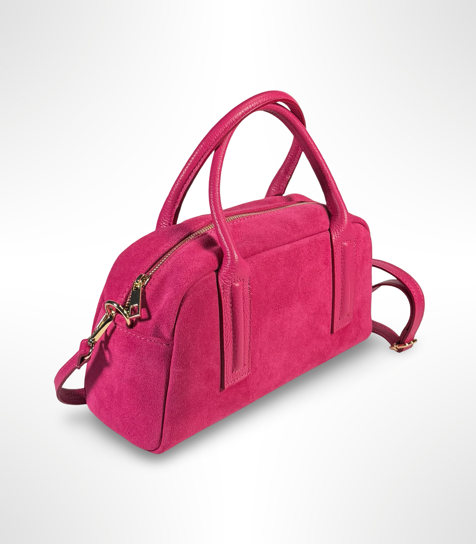 The Solea Bag brings a chic, modern silhouette crafted in premium genuine Italian suede.